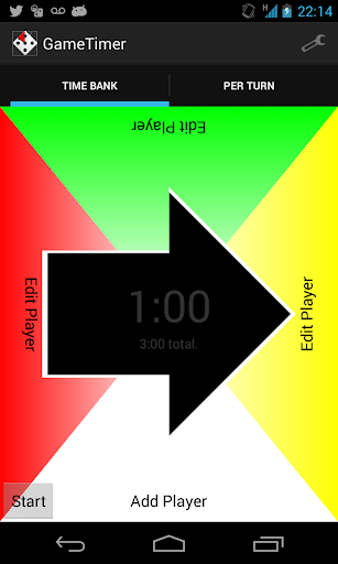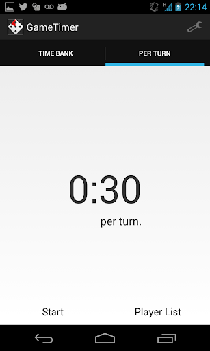 The Game Timer was created (although not limited to be used) for enforcing timing rules while playing board games. The two main functions allow the game to be timed on a per-turn or an accumulation basis. In Per Turn mode, the user can set a time per turn and keep track of how many times a particular user goes over. The second mode, Time Bank, is similar to a chess clock. Each player is given the same amount of time to start and, as they play their turn, the time is taken out of that player's bank. Once that player is out of time, they are out of the game. The user can also turn off elimination mode meaning once a player runs out of time, they are not eliminated from the game. The app will track how far over time the player has gone.