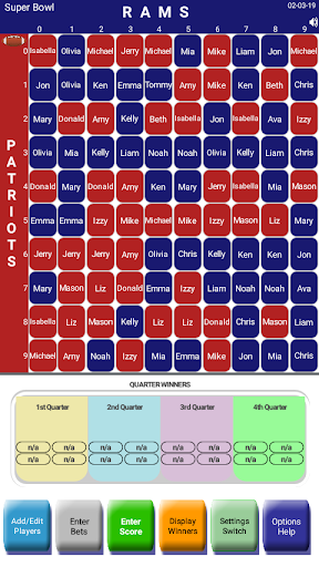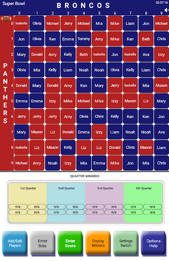Just set up a pool with team names and start adding your pool players. GamePool can send each player an invitation to join the pool with their bets. As you receive each bet GamePool can send back an acknowledgement with their personalized bet ticket. After the game starts, you enter each quarter’s score to get the winners and GamePool can send out email notification to all of them automatically.