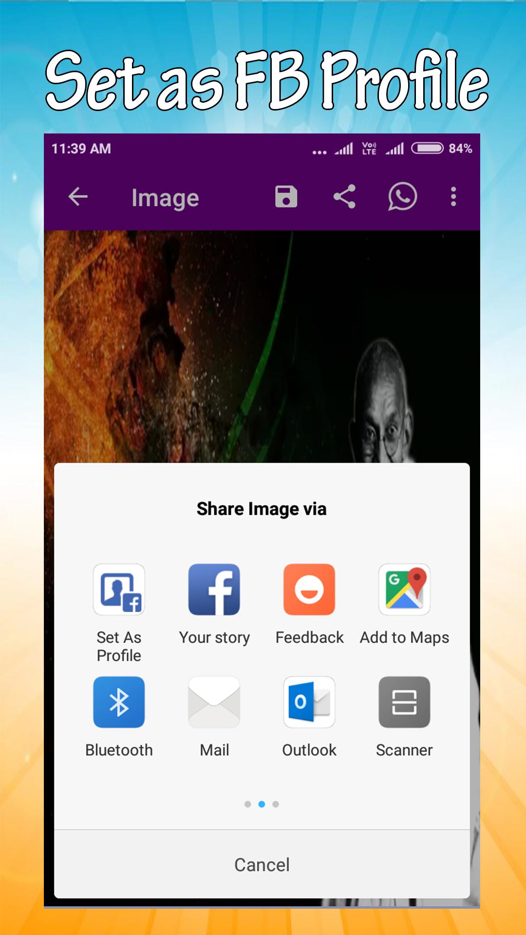This app is a collection of the best Mahatma Gandhi image greetings that are easy to share with friends in social networks.