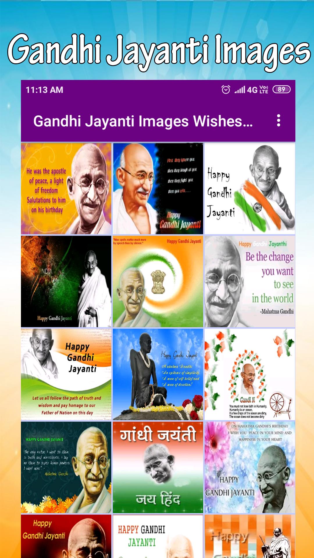 Gandhi Jayanti Images Wishes 2019 Application is specially created with nice realistic and Beautiful Mahatma Gandhi Jayanti background, it has a huge collection of Gandhi images, so wish your loved one, friends & family on this biggest Gandhi Jayanti seasons with Mahatma Gandhi wishes.