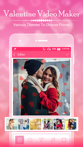 Valentine Photo Video Maker is application for create Valentine video from images, music and share Valentine video with your friends! Valentine Photo Video Maker is one of the best video editor, photo slideshow maker and movie editing apps in Android Store.