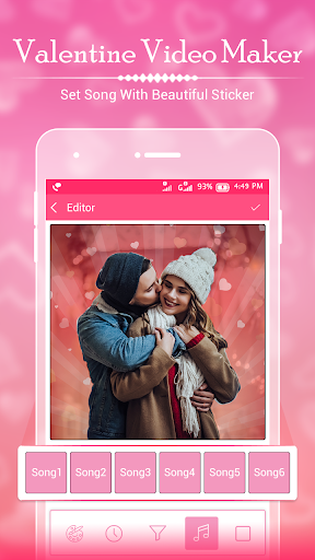 3. Background music - Make video from Adding Music, New Photos, Frames, Effects to make Valentine Day Photo Video Maker or Valentine Day Photo Frame.
