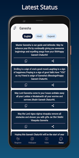 • Collection of latest ringtone, wallpaper and status for ganesh chaturthi.