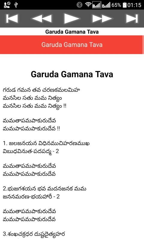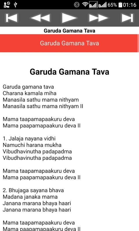 Garuda Gamana Tava song Bengali Lyrics