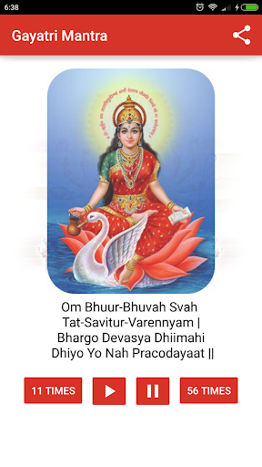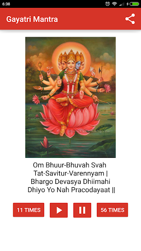 Gayatri Mantra 108 times audio free app lets you play Gayatri Mantra audio mp3 on loop for 108 times, 56 times or 11 times.