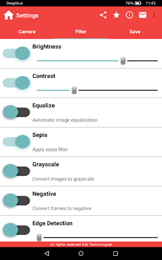 12. Let’s you apply one or more image filters to captured images. - Available in pro version