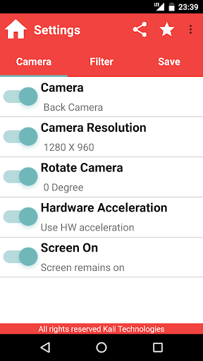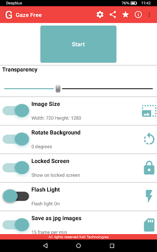 The app makes your device screen translucent by overlaying camera captures on your device screen and enabling you to always keep an eye on reality. The app will enable you to use your phone while you are walking or doing something that requires you to be watchful of your ever changing surroundings.Camera flash can be used to compensate for changing ambient lighting conditions. The app can also save camera captures periodically and continues to run even when the screen is off, thus your device can be used as a dash-cam or a portable surveillance device. By choosing front camera you can see what is happening behind your back while you continue to use your phone. An option to choose between front and back camera doubles the usability of the app.