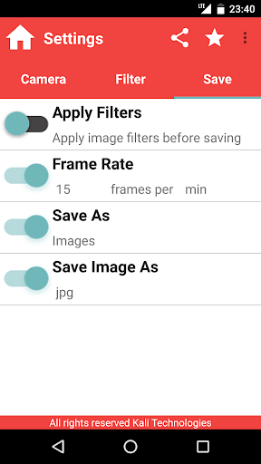 • Save As: Toggling this option enables app to either save or not save the captured images.