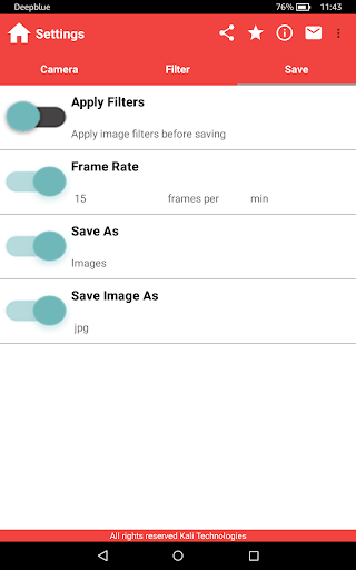 4. Choose image save frequency wisely, as it can fill your device memory by saving lot of images.