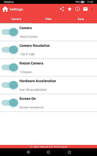 • Camera Resolution: Choose camera resolution from device supported resolutions.