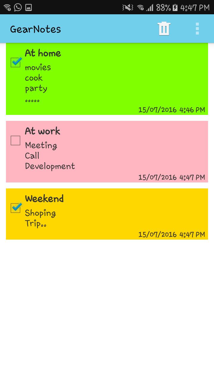 4. On gear1, you can delete the notes (which would be immediately reflected to phone as well)