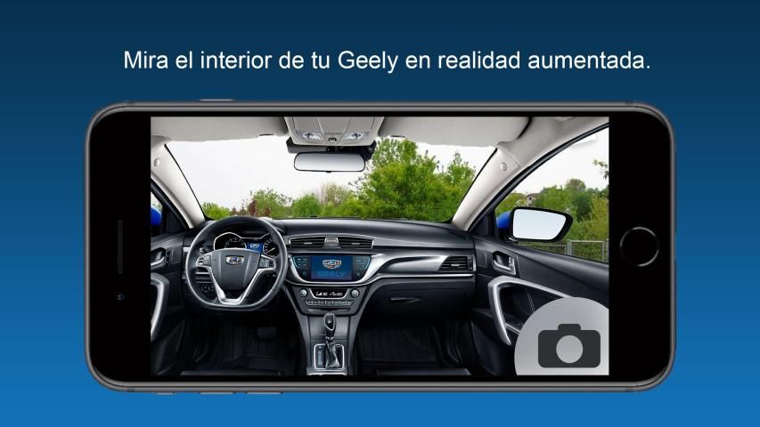 Dentro de la aplicación podrás conocer los interiores, ver más información sobre el vehículo, cambiar de color e incluso tomarte una foto con tu nuevo Geely virtual.