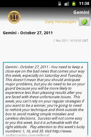 Have your daily Gemini Horoscopes at you fingertips Read the top astrology and horoscopes from around the internet for your astrological sign. share with your friends and family on facebook and show them your daily horoscopes.