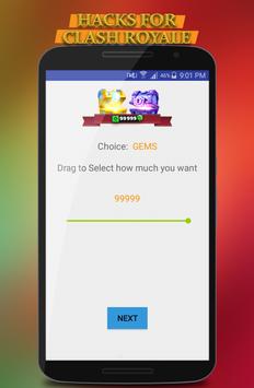 This app made only for joke and have fun withe your friends and is not a hack for Clash Royale or it provides any way to get unlimited free gems or resources to your Clash of royal account. T