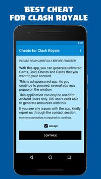 Cheats for Clash Royale will help you to manage your game account and improve fast! With many great cheats this application will help you to be a king of the game! Download it and read carefully all steps from application. After a while you will see how you account become stronger and bigger and you as a player will become a poferwull ally for everyone in this game. Clash Royale is very popular game with a lot of players and you should use any help which you can get. So use this legit trips and tricks and cheat in game and be a true king!