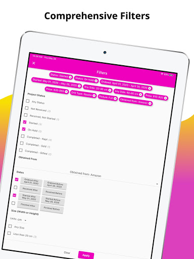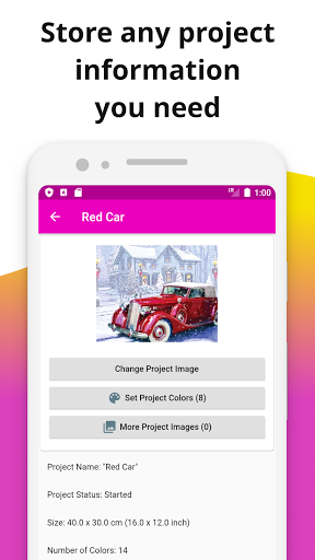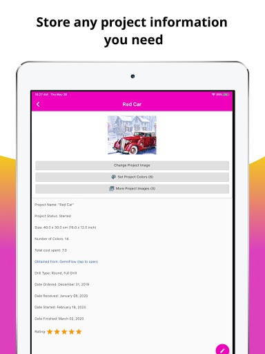 - Supported Project’s Information: Name, Canvas Size, Cost, Drill type, Date, Project status, Notes, Rating, Used Colors.