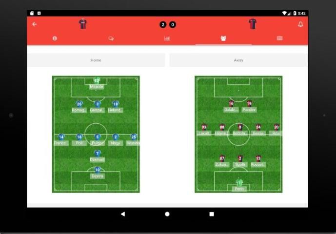 - very quick match results obtained thanks to the push logic, pre-game lineups