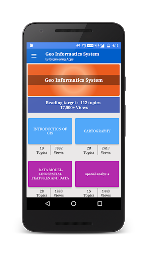 The app is a complete free handbook of Geographic Information System- GIS which covers important topics, notes, materials & news on the course. Download the App as a reference material & digital book for Civil & other engineering programs & degree courses.