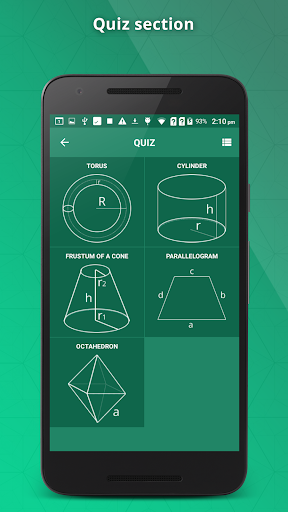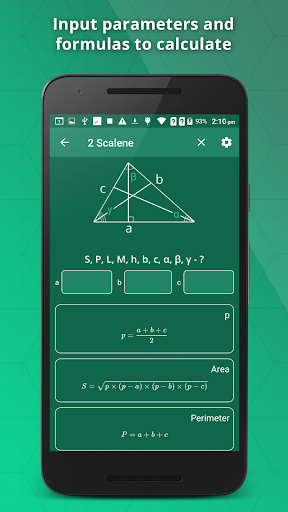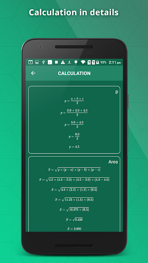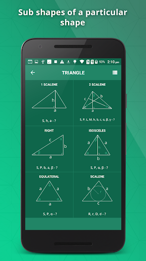 It displays the formulas to calculate the same and also it will calculate, the Perimeter, Area, Volume, etc, It will also display a Detailed Calculation Steps on how the result was obtained.