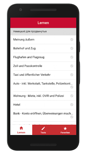 Lessons relate to everyday situations (such as greeting, conversation, vacation, hotel, restaurant, meeting, shopping, and much more) that you can use in everyday speech. Thus, you learn German quickly and with pleasure.