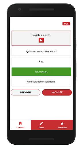The ability to listen to the correct pronunciation of each word and phrase in high quality sound from a native German speaker!