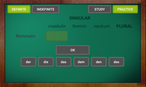 This app helps you learn and remember the german articles. The first but most important step on learning the german language. Feel free to contact. Thank you.