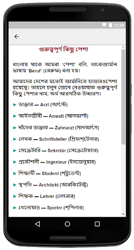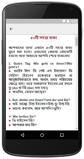 Bangla to German (Bengali-Deutsch) app made for you to learn Deutsch / German from Bangla. This Bangla to German / Deutsch Learning App known as Bangla2German ( বাংলা থেকে জার্মান শেখার মোবাইল অ্যাপ ) also. Here we have collected huge content for you. If you are a basic learner then this app is really for you!