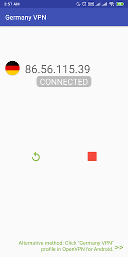 3. Click on "Play" button , the IP address of OpenVPN profile will be save, import and start to connect to the server by pass command to "OpenVPN For Android" app.
