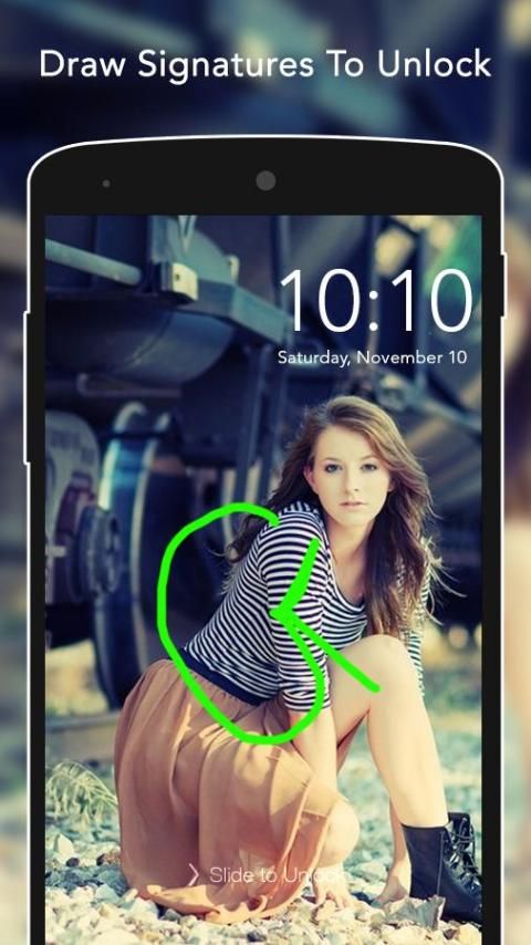 The lock screen detects and matches the signature or the gesture every time taken in the lock screen with your signature or gesture created and saved by you as your lock screen password. You can pull and save any gesture like star symbol, heart, triangle, square, circle etc., or you can pull any numerical number or to subscribe to her as your password.