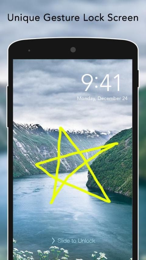 A unique gesture lock screen where you can secure your mobile with your signature or pull gesture you or password