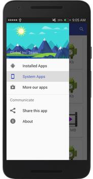 directly from your memory and share Installed Apps file directly as attachment via Bluetooth, Email, Drop-box, Google Drive etc.