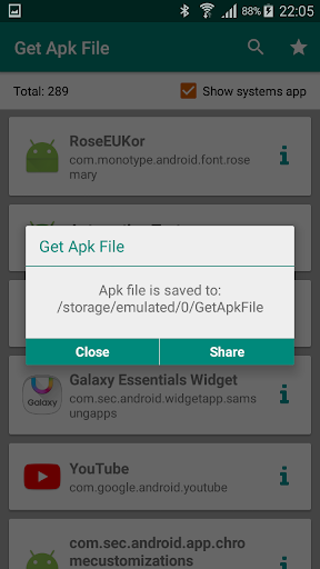 This "Get App Apk File" application will help you get APK files that are installed on your device, then copy them to SD card.