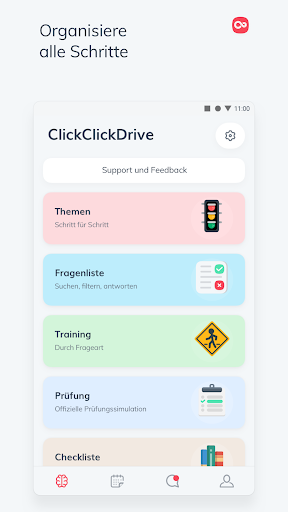 The ClickClickDrive Theory App contains the current exam questions from the official TÜV/DEKRA question catalog. Through real exam simulations, our theory learning app is the ideal preparation for the theoretical driving test in Germany.