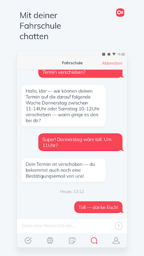 • Stay in touch with driving instructors and the driving school office via chat