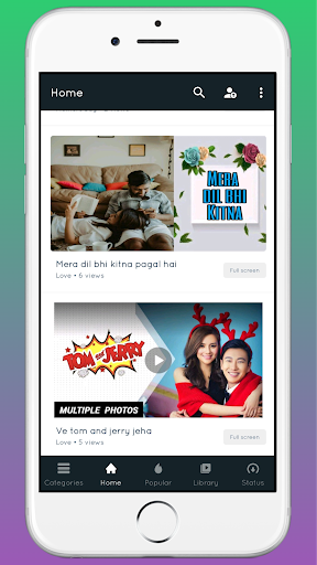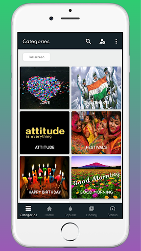 This app provide best full screen whatsapp status and also gives you ability to download your frnds status withaout telling him.