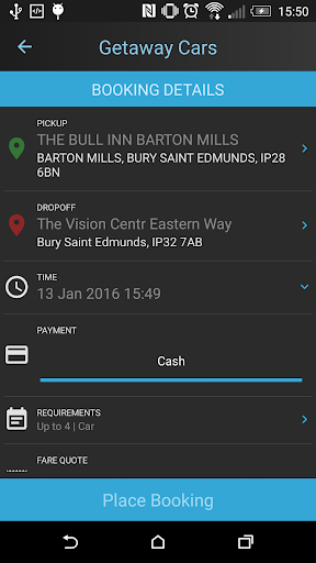 Welcome to the Getaway Cars booking App! Through this app you can: • Order a taxi • Cancel a booking • Track the vehicle on the map as it makes its way towards you! • Receive real-time notifications of the status of your taxi