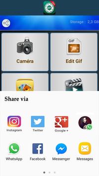 • Share your Gif Maker Edit by one click. It very easily for everyone. You can upload GIF into GIPHY, IMGUR, FACEBOOK, TWITTER, ....