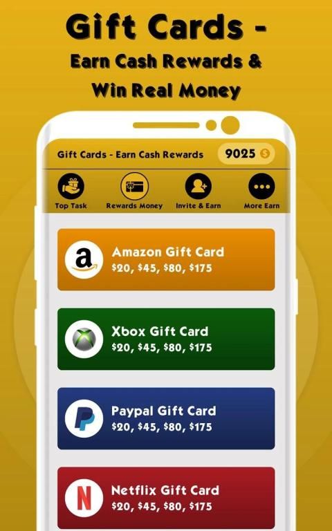 Gift Cards - Earn Cash Rewards & Win Real Money app is supported gift card rewards like as $5, $10, $15, $20, $25, $35, $50, $75, $150, $250 Paypal Gift Card, paypal cash, Google Play Gift Card, Amazon Gift Card, Xbox Gift Card, Steam wallet Gift Card, Play station Gift Card, Itunes Gift Card.