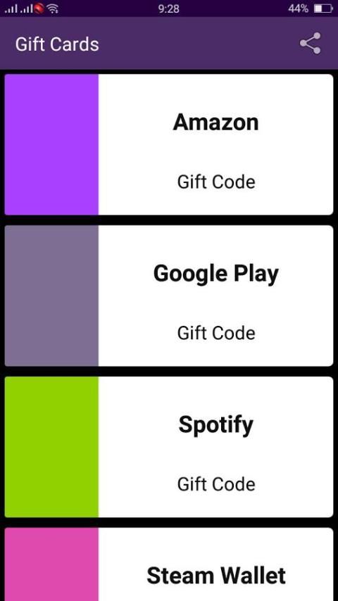 Gift Cards App comes complete with very simple and easy interface. it will not provide you bunch of different coupon for same shopping site but it provides only a coupon code which is best in real time.