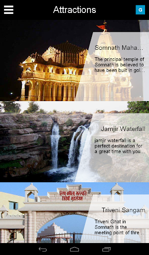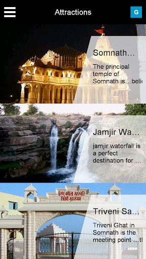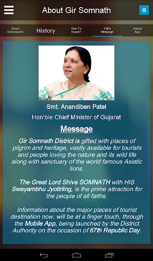 The Collectorate of Gir Somnath proudly presents the Gir Somnath Tourism app for the visitors and local people of Gir Somnath. This app covers exclusive information about Gir Somnath places and surrounded routes nearby Gir Somnath district. With tourism friendly pictorial representation of places with navigation on map, this app helps you to make your journey comfortable and enjoyable.