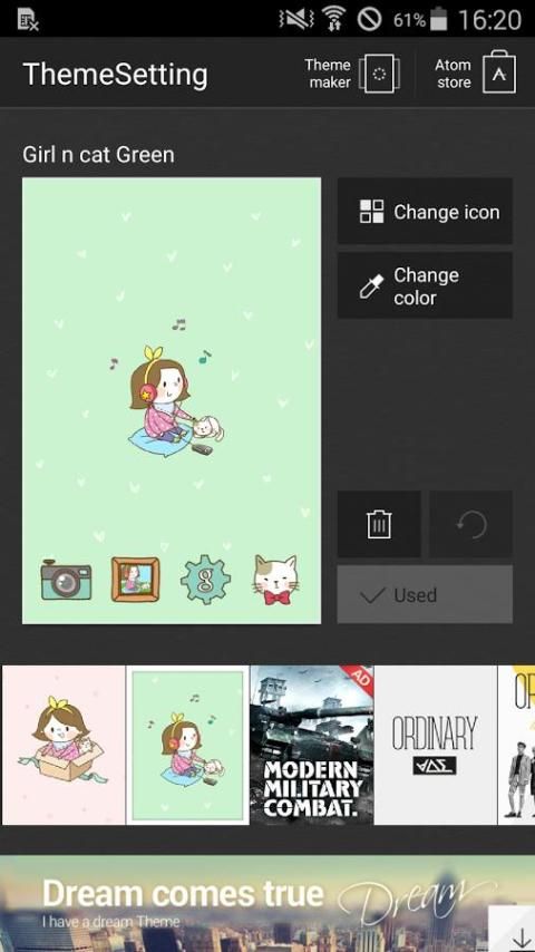 With weekly updated themes, icon packages, and widgets that range from sophisticated, simple themes to artists’ sensuous illustrations, you can decorate your phone’s home screen daily: search Atom Store on the search tab!!