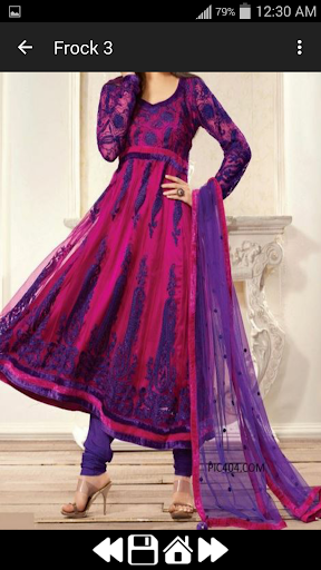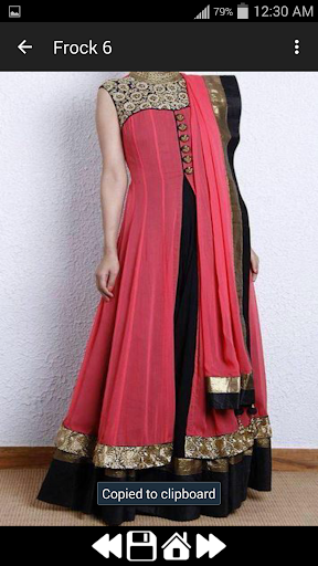 Anarkali frock: It is an a-line kind of farak with embroidered neck and sleeves or fancy lace work and when worn with churidar pajama, nothing looks better than this frock, widely wears in India.