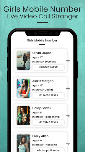 Girls Mobile Number Live Video Call Stranger app will let you help to easily find any girls,aunties,desi bhabhis WhatsApp numbers which is very difficult nowadays, but this makes it easy and fast.