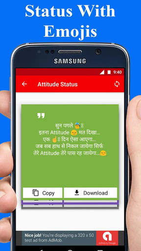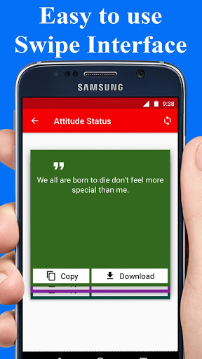 Very easy to use interface just swipe left and right to read the killer attitude status for girls and easily set that as your WhatsApp status or FB status.