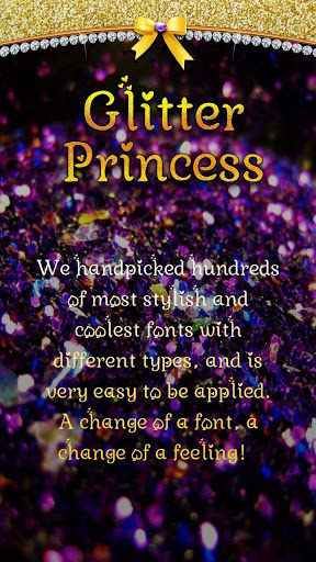 Glitter Princess allows all users to change the system font of your phone or tablet 👌. Supported for devices which have FlipFont™ (Samsung Galaxy S3, S4, S5, Note, Note Ⅱ, Note Ⅲ) to change fonts perfectly or root access. This is absolutely the best installer FlipFont for android!