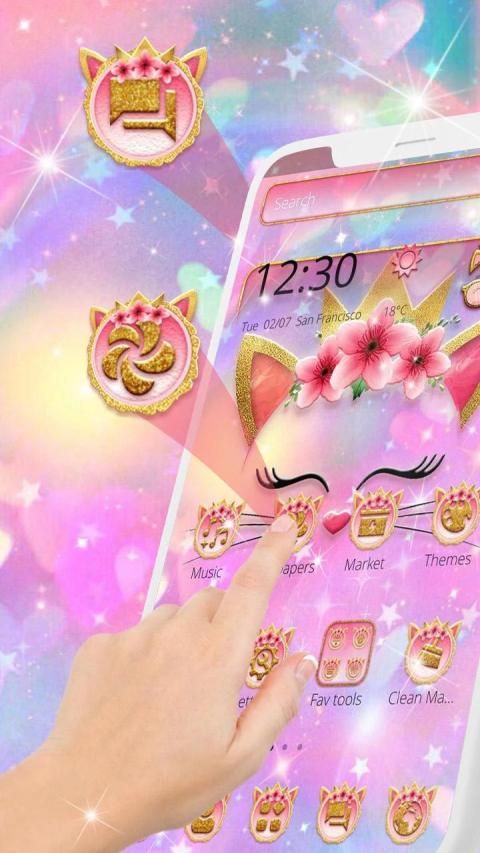 Enjoy The Glitter Flower Cat Theme For Free with Impressive Wallpapers And Gorgeous Emojis Available. Install Glitter Flower Cat Theme For Free.