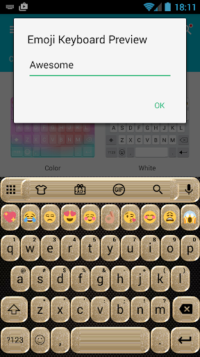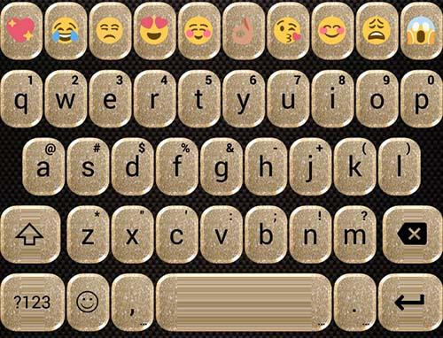 This is a theme with gold glitter buttons on a dark black dotted background for Emoji Keyboard (Cute or GIF version) application: please install Emoji Keyboard main program to use this theme.