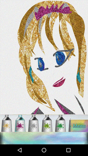 Press on the brush multiple times to switch between colors, glitter and stickers.
