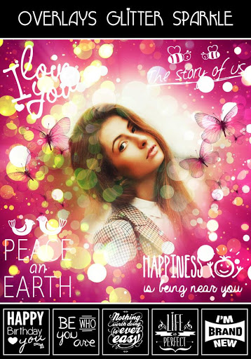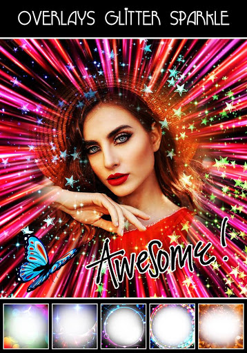 Glitter photo frames you can instantly beautify your photos with mind blowing glitter effects. Overlay Photo App is a unique combination of Glitter Photo Effects and Photo Blender which allows you to new creation.