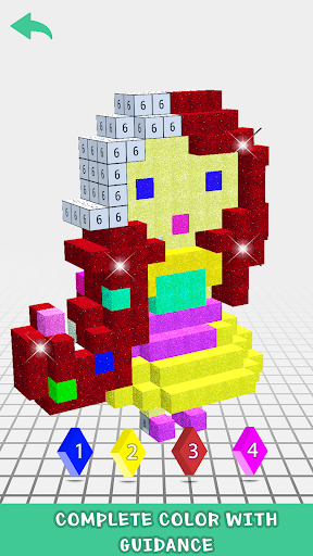 Voxel 3D Glitter Color by Number helps you to color pictures from all directions with the help of sparkly glitters. It's an excellent way to pass time with family for fun. Calm down and enjoy hours of peace and relaxation, develop your concentration and accuracy. Choose from a wide range of pictures and color by number the ones you like to create your artworks.